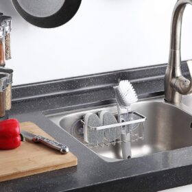 SunnyPoint NeverRust Deluxe Kitchen Sink Suction Holder for Sponges, Scrubbers, Soap, Kitchen, Bathroom, 304 Stainless Steel (Brushed Texture, 7.4 x 3.3 x 2.75 Inch)(Sponge & Brush NOT Included)