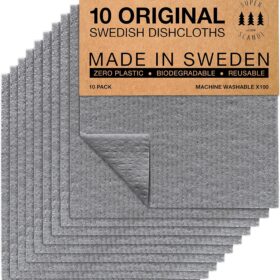 SUPERSCANDI Swedish Dish Cloth 10 Pack Eco Friendly Reusable Sustainable Biodegradable Cellulose Dish Cloths Kitchen Dish Rags Washing Wipes Paper Towel Replacement Washcloths (10 Pack Grey)