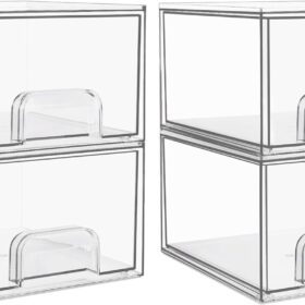 Vtopmart 4 Pack Clear Stackable Storage Drawers, 4.4” Tall Acrylic Bathroom Makeup Organizer,Plastic Storage Bins For Vanity, Undersink, Kitchen Cabinets, Pantry, Home Organization