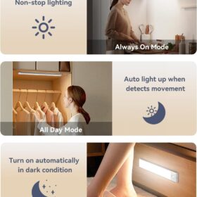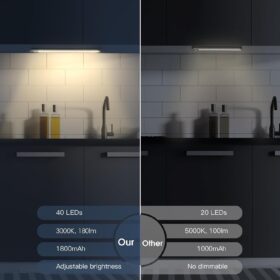 Under Cabinet Lighting, 3200mAh Rechargeable Battery Operated Motion Sensor Light Indoor, 60LED Under Cabinet Lights, Wireless Closet Lights for Kitchen (2pack)