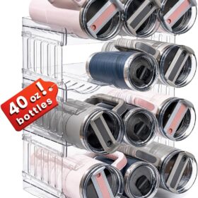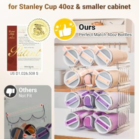 Water Bottle Organizer for Stanley 40 oz Tumbler with Handle, Patented Pantry Kitchen Organizers and Storage for Stanley Cup Accessories, Stackable Water Bottle Holder Wine Rack Gifts, 4Pack