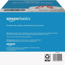 Amazon Basics – Tall Kitchen Trash Bags, 13 Gallon,10% Post Consumer Recycled Content, Unscented, 200 Count, Pack of 1