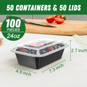 50 Pack (100-Piece) 24 oz Meal Prep Containers Reusable with Lids, Sturdy Leakproof & Food Safe, Microwave, Freezer, Dishwasher Safe Food Prep Containers, To Go Take Out Plastic Food Storage