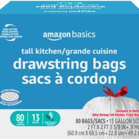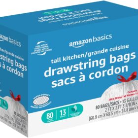 Amazon Basics Ultra-Force Tall Kitchen Drawstring Trash Bags, Classic Clean Scented, 13 Gallon, 80 Count, Pack of 1