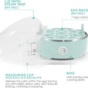 Elite Gourmet EGC115M Easy Egg Cooker Electric 7-Egg Capacity, Soft, Medium, Hard-Boiled Egg Cooker with Auto Shut-Off, Measuring Cup Included, BPA Free, Retro Mint