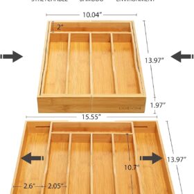 Expandable Bamboo Kitchen Drawer Organizer for Cutlery and Utensils, Adjustable Bamboo Wood Cutlery Tray in Drawer for Flatware and Silverware in Kitchen, (Natural)