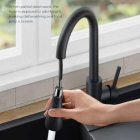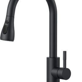 FORIOUS Black Kitchen Faucet with Pull Down Sprayer, High Arc Single Handle Classic Stainless Steel Sink Faucet 1 or 3 Hole, Suitable for Farmhouse Camper Laundry Rv Bar