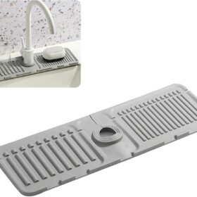 Faucet Mat for Kitchen Sink – 2024 Upgraded Premium Silicone Splash Guard with Fast Drying Properties – Protective Sink Tray Ideal for Stone Sinks in Kitchen & Bathroom (1, Gray)