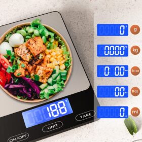 Food Scale, 11lb Kitchen Scale with 6 Units Tare Function & LCD Display, 0.05oz/1g Stainless Steel Digital Food Scale Grams and Ounces for Baking, Cooking, Dieting and Meal Prep (Batteries Included)