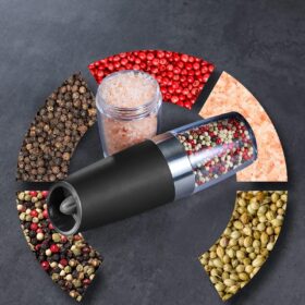 FORLIM Gravity Electric Salt and Pepper Grinder Set, Automatic Pepper Grinder Shakers Mill, Upgraded Batteries Powered Adjustable Coarseness with LED, One Hand Operation Perfect for Kitchen(Black)