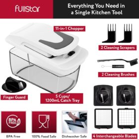 Fullstar Vegetable Chopper, Cheese Slicer, Food Chopper, Veggie Chopper, Onion Chopper, Vegetable Chopper with Container, Mandoline Slicer & Cheese Grater (6 in 1 – White)
