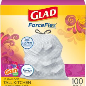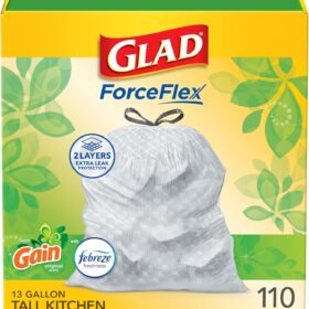 Glad ForceFlex Tall Kitchen Trash Bags, 13 Gal, Gain Original with Febreze, 110 Ct (Pack May Vary)