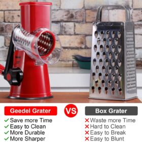 Geedel Rotary Cheese Grater, Kitchen Mandoline Vegetable Slicer with 3 Interchangeable Blades, Easy to Clean Grater for Fruit, Vegetables, Nuts