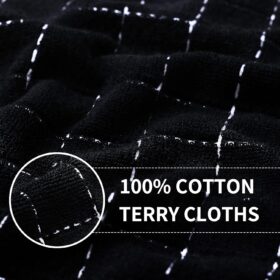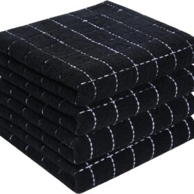 Homaxy 100% Cotton Terry Kitchen Towels(Black, 13 x 28 inches), Checkered Designed, Soft and Super Absorbent Dish Towels, 4 Pack