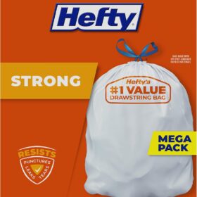 Hefty Strong 13 Gallon Trash Bags, Tall Kitchen Trash Bags, UnscentedLarge Trash Bags with Drawstrings, Durable Closure, Resists Leaks, Punctures, and Tears, White, Unscented, 120 Bags