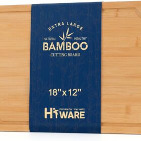 Hiware Extra Large Bamboo Cutting Board for Kitchen, Heavy Duty Wood Cutting Board with Juice Groove, 100% Organic Bamboo, Pre Oiled, 18