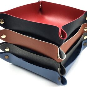 4 Pack Valet Tray PU Leather Jewelry Tray for Women and Man Portable Catchall Travel Storage Dish Plate Key Tray For Entryway Desk Organizer for Phone, Keys, Glasses, Wallet, Earphone, Watch, Coin
