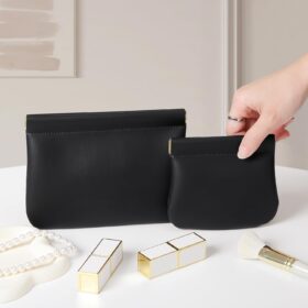 2 Pack Small Makeup Bag for Women, New Organosilicon Super Fiber Leather Mini Cosmetic Bag for Travel, Coin Purse Organizer Storage Pouch (Black)