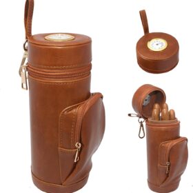 AMANCY Upgrade Cedar Wood Lined Portable Travel Leather Cigar Humidor Case with Pocket,Easily Carry Lighter and Cutter