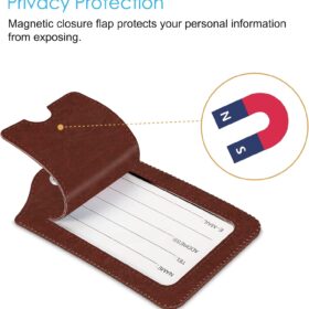 2 Pcs Luggage Tags, Fintie Privacy Cover ID Label with Stainless Steel Loop and Address Card for Travel Bag Suitcase, Retro Brown