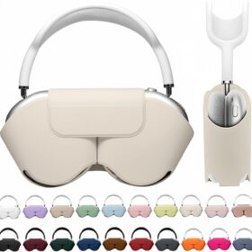 Maxjoy for Apple Airpods Max Smart Case Cover, Soft PU Leather Protective Cover Accessories for Airpod Max with Sleep Mode, Anti-Dust Travel Carrying Case for Airpods Pro Max Headphones, Off White