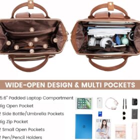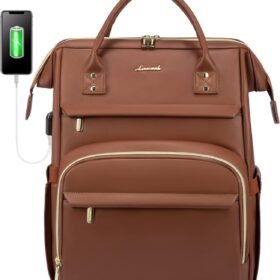 LOVEVOOK Leather Laptop Backpack for Women 15.6 inch,Travel Purse Nurse Teacher Carry On Backpack Computer Bag,Professional College Business Work Bags with USB Port,Brown