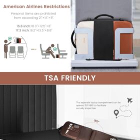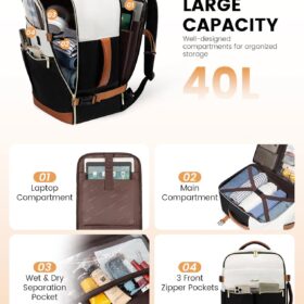 LOVEVOOK Travel Backpack for Women, TSA Carry On Backpack Flight Approved Luggage, 40L Water Resistant Personal Item Daypack Large Weekender Bag fit 17 inch Laptop with 3 Cubes, Beige-black-brown
