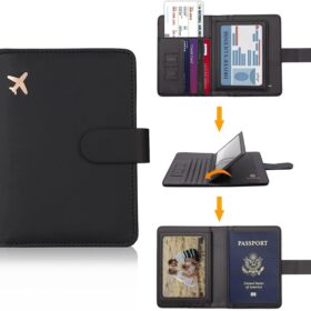 Melsbrinna Rfid Passport Holder for Travel women/Men, Cute Passport Wallet Rfid Blocking Card Slots, Rfid Passport Cover/CaseTravel Wallet, Passport Book Holder (1, Black)