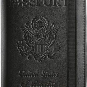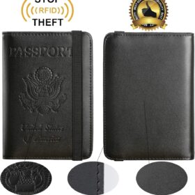 Passport Holder, Passport Cover with Credit Card Slot and Boarding Pass Slot Combo, Passport Wallet Case Book Travel Must Have, RFID Blocking Leather Travel Accessories, Black