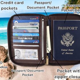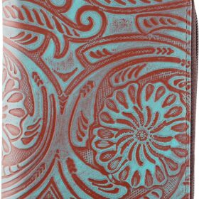Passport Wallet – Travel Document Holder w/RFID Blocking Full Grain Leather Bifold compact zip around Wallet with Credit Card Slots for Women and Men,Turquoise floral,500-50