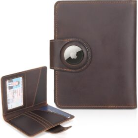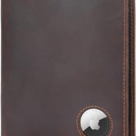 Polare Full Grain Leather Slim and Soft RFID Blocking Wallet for Men Snap Bifold Travel Wallet Passport Holders 2 Passports (Dark Brown with AirTag Slot)