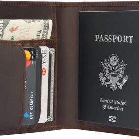 Polare Full Grain Leather Passport Holder Cover Case for Men RFID Blocking Travel Wallet Holds 4 Passports (Dark Brown with AirTag Slot)