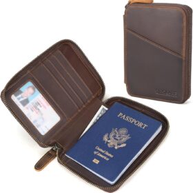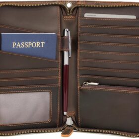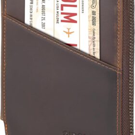 Polare Full Grain Leather Travel Passport Wallet with YKK Zipper and RFID Blocking Document Organizer Holder 2 Passports (Cocoa Brown)