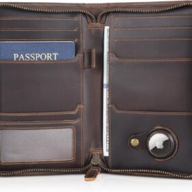 Polare Luxury RFID Blocking Leather Passport Holder Travel Wallet For Men and Women (Dark Brown with AirTag Slot)