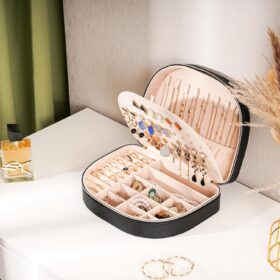 ProCase Travel Size Jewelry Box, Large Portable Seashell-Shaped Jewelry Case, 2 Layer Jewelry Organizer in PU Leather for Women -Black