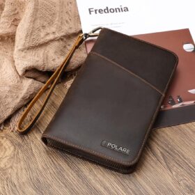 Polare Slim RFID Blocking Leather Passport Holder Travel Bifold Wallet For Men