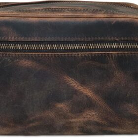 Premium Buffalo Leather Dopp Kit Toiletry Bag Rustic Vintage Style Travel Organizer with Zipper Closure Leather Shaving Bag for Men & Women and Spacious with Easy Carry Handle