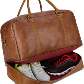 BAOSHA Vegan Leather Large Travel Duffel Tote Bag Carry On Weekender Overnight Bag With Shoe Compartment HB-38