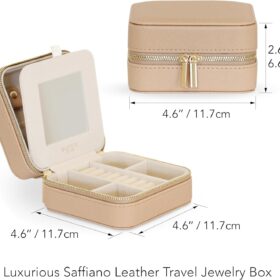 BLUTETE Saffiano Leather Travel Jewelry Box with Mirror | Portable Jewelry Zipper Case | Multi Compartments Jewelry Organizer for Women | Popular Gift Jewelry Box Rings Earrings Nacklaces (Sand)