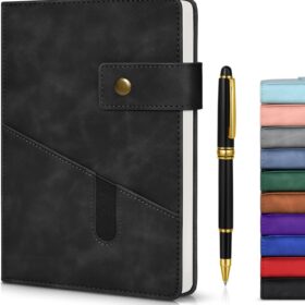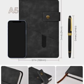 Black A5 Lined Leather Journal Notebook for Men Women,5.9 X 8.4