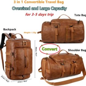 Baosha Stylish Vegan Leather Men Weekender Travel Duffel Tote Bag Backpack Travel Hiking Rucksack Overnight Bag 3-Ways Convertible HB-26 (Brown)