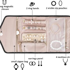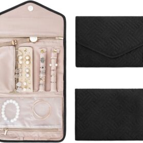 BAGSMART Travel Jewelry Organizer Roll Foldable Jewelry Case for Journey-Rings, Necklaces, Bracelets, Earrings, Black