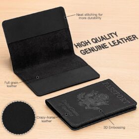 BIAOTIE Premium Leather Passport Holder Covers, Rfid Travel Wallet Passport Document Holder, Travel Essentials Wallet Cover Case for Men and Women (Black)