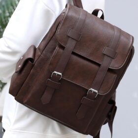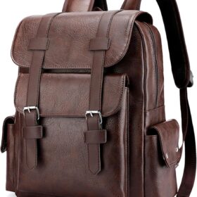 Leather Laptop Backpack Travel Backpack Carry on Flight Approved Dark Drown College Computer Back pack Large Work Backpack for Women Men Teacher Business BackPack