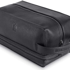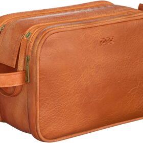 Leather Toiletry Bag for Men – Travel Gift Shaving Dopp Kit – Bathroom Shower Organizer – Cosmetic Makeup Bag for Women