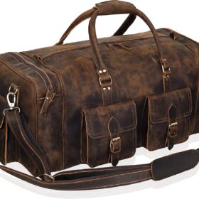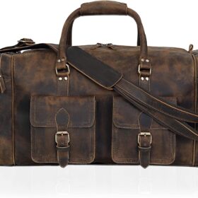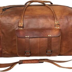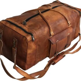 Leather 24 Inch Luggage Handmade Duffel Bag Carryall Weekender Travel Overnight Gym Sports Carry On Duffel Bag For Men And Women