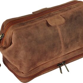 Leather Toiletry Bag for Men Women – Spacious Womens Mens Toiletry Travel Bag, Large Travel Toiletries Bags (Rugged Brown, Large Dopp)