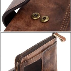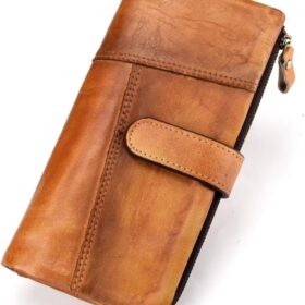Vintage Genuine Leather Long Wallet Men Women Credit Card Holder Purse Zipper Business Moible Phone Wallet,Best Choice (Color : Brass, Size : 19.5 * 9.5cm)