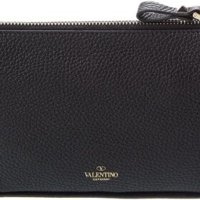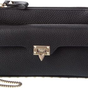 Valentino Rockstud Grainy Leather Wallet On Chain, Black