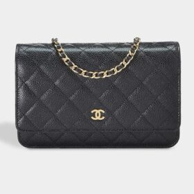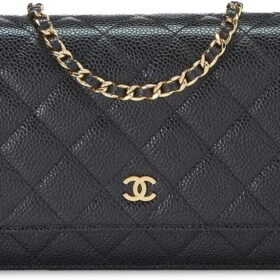 WHAT GOES AROUND COMES AROUND Women’s Pre-Loved Chanel Black Caviar Classic Quilted Wallet on Chain